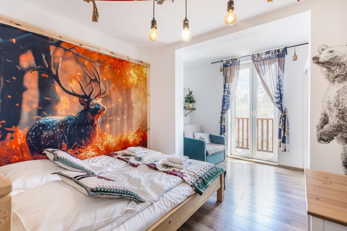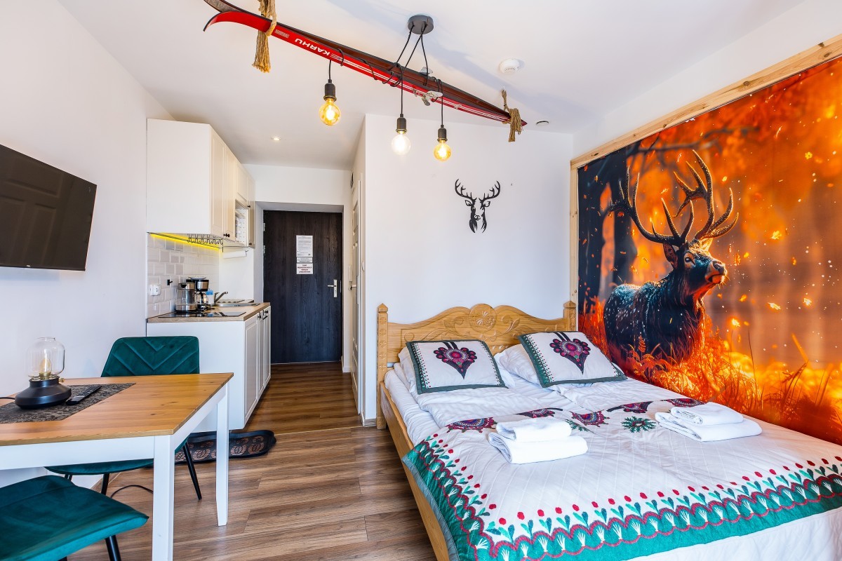 Apartament zlokalizowany jest w zabytkowym budynku Pałacu Tatrzańskim mieszczącym się w malowniczej miejscowości Bukowina Tatrzańska na Wierchu Głodowskim, z którego okien rozpościera się widok na piękny górskie łąki oraz lasy. To miejsce, w którym każdy Gość znajdzie coś dla siebie, aby mile i aktywnie spędzić wolny czas. W pobliżu znajduje się przystanek autobusowy, ośrodek zdrowia, apteka, sklepy spożywcze oraz karczmy.