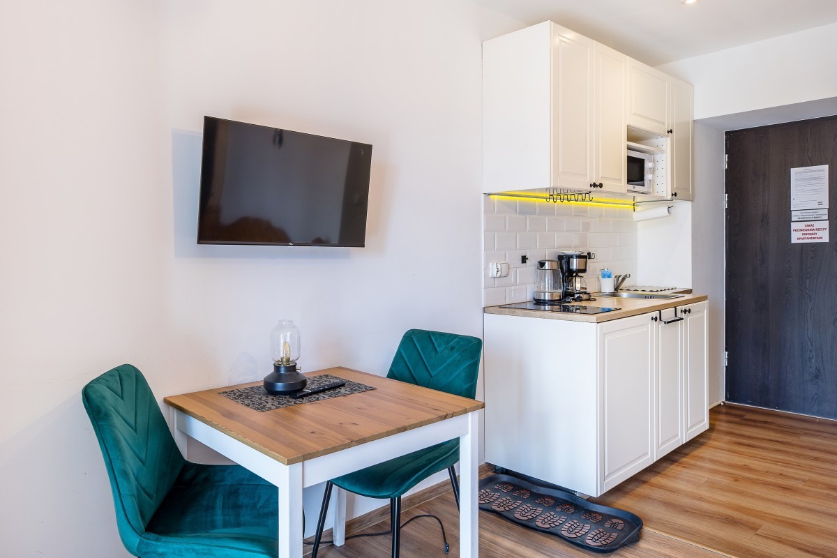 Apartament zlokalizowany jest na II piętrze. Powierzchnia łączna apartamentu to 20,76 m2 (nie licząc powierzchni łazienki). Mieszkanie zapewnia komfort oraz domową atmosferę. Idealny dla max 3 osób.