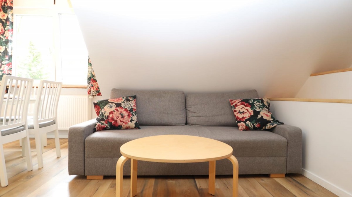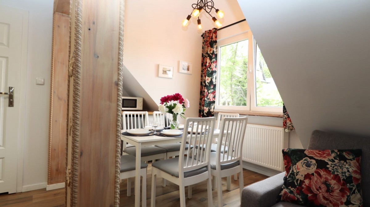 Apartament zlokalizowany jest na III piętrze. Powierzchnia łączna apartamentu to 48m2 (nie licząc powierzchni łazienki). Mieszkanie zapewnia komfort oraz domową atmosferę. Idealny dla max 5 osób.