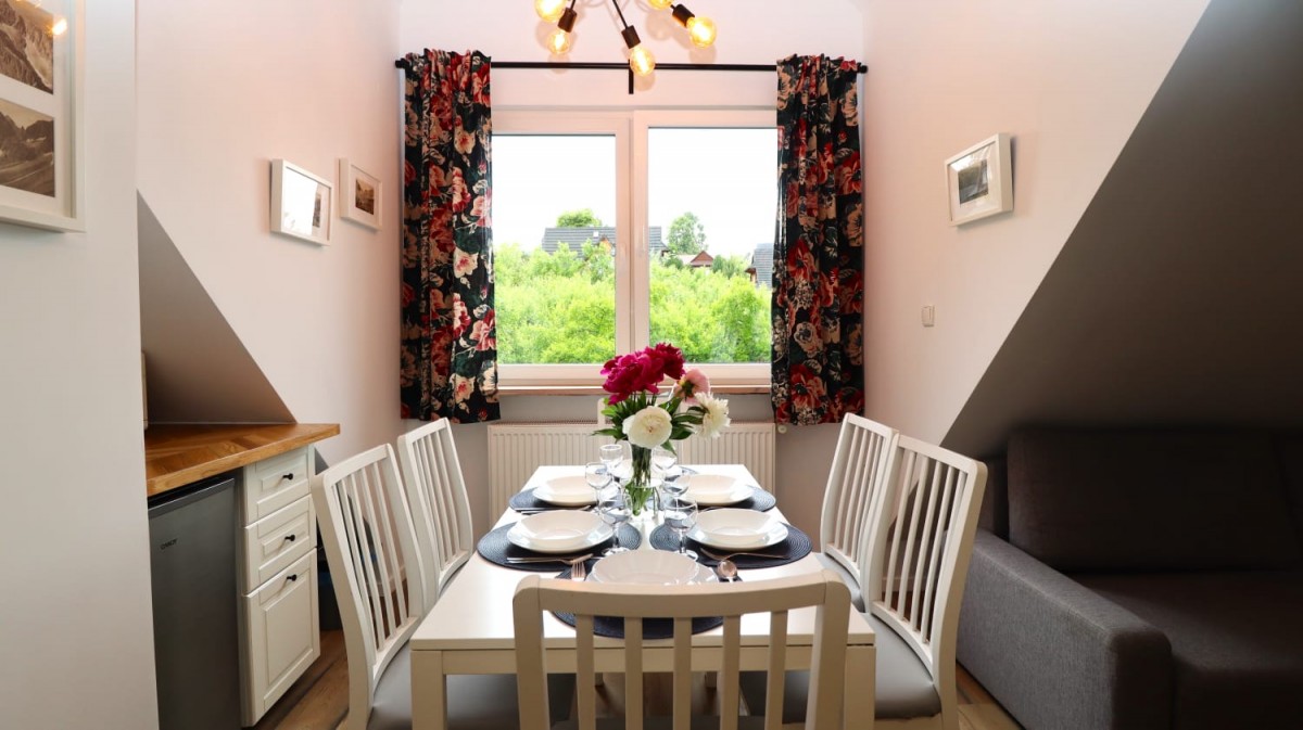 Apartament zlokalizowany jest w zabytkowym budynku Pałacu Tatrzańskim mieszczącym się w malowniczej miejscowości Bukowina Tatrzańska na Wierchu Głodowskim, z którego okien rozpościera się widok na piękny górskie łąki oraz lasy. To miejsce, w którym każdy Gość znajdzie coś dla siebie, aby mile i aktywnie spędzić wolny czas. W pobliżu znajduje się przystanek autobusowy, ośrodek zdrowia, apteka, sklepy spożywcze oraz karczmy.